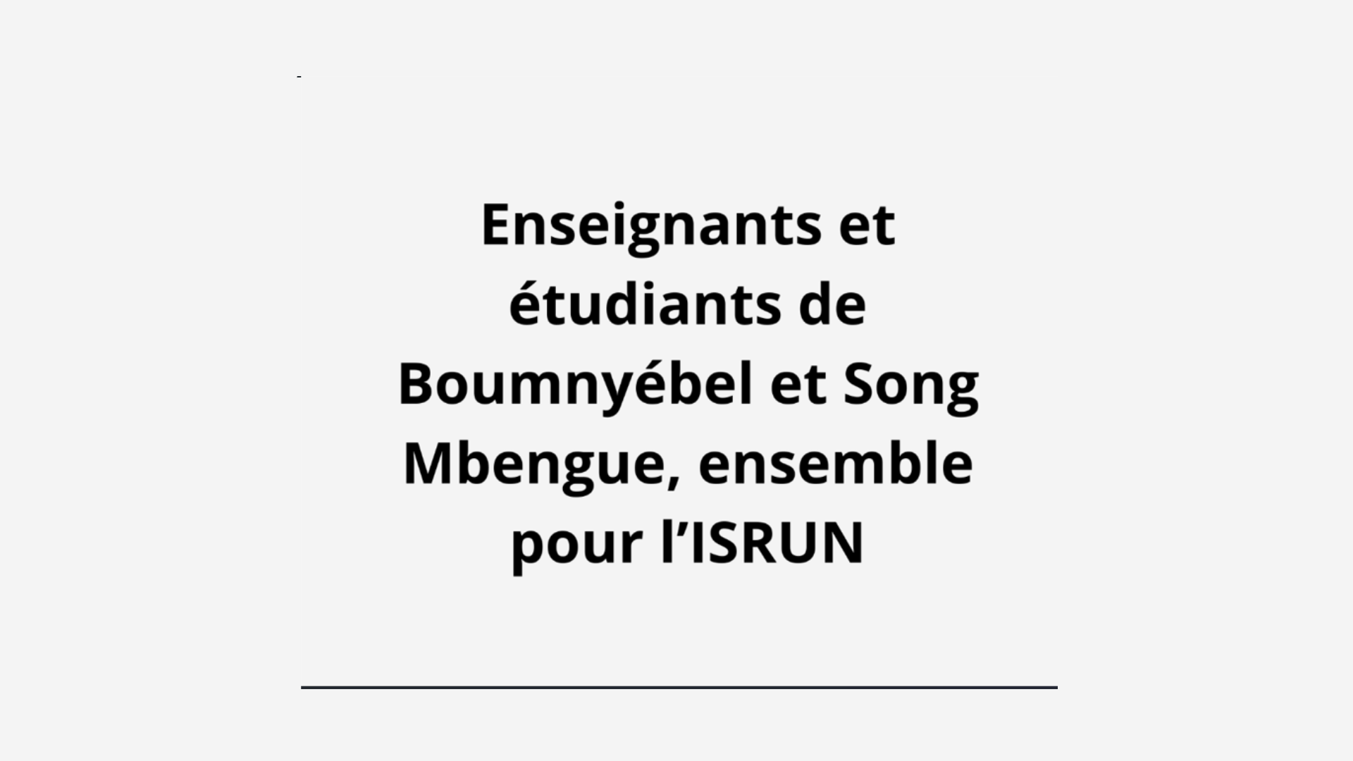 L’Institut Supérieur Ruben Um Nyobè (ISRUN), ouvert en 2019-2020 sous le nom Institut Supérieur Nyong et Sanaga, est un établissement d’enseignement supérieur dédié à la formation professionnelle et technologique. Autorisé à ouvrir 11 filières, l’institut opère actuellement dans trois domaines clés : Agriculture, Énergie électrique et énergies renouvelables, et Environnement.